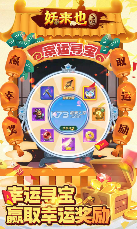 《妖来也》金额越多返利就越高,领海量的资源,每日可领大量的钻石福利花不完,送红色的套装福利拿不停,幸运寻宝bug工具英雄招募,红将全面,赠送百万的现金,免费破解超多的游戏特权,幸运赢得奖励。