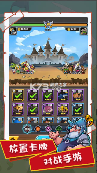 《军临旗下》是一款以中世纪骑士联赛为背景的休闲放置卡牌对战手游,拥有全新的战斗方式和丰富的卡牌策略搭配。冒险者们需要在战斗开始前选择5张卡牌进行组合,战斗过程中,卡牌角色将实体化,进入战场进行战斗。通过双方卡牌角色进行对撞战斗、施放技能以及不同卡牌间的搭配连击,从而一决高下。