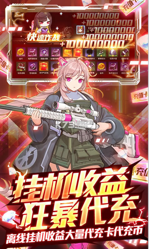 解锁二次元美少女,享受VIP待遇和华丽特效。 培养需要大量资源,新武器带来了很多帮助