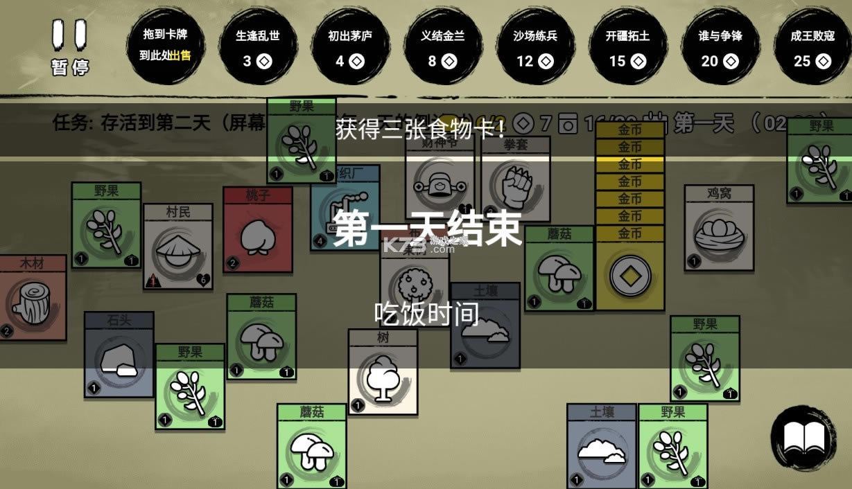 可以组合不同的卡牌来触发不同的事件去帮助村民建造和生存挑战。