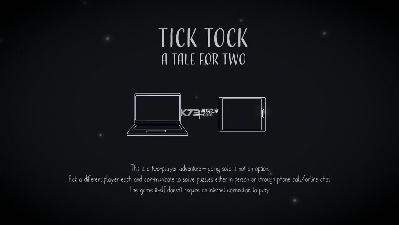 游戏的全称tick tock a tale for two又叫做《滴答:双人冒险》是一款非常好玩的双人协作类解谜游戏, 每一位玩家都需要在自己的移动设备(手机或平板电脑)上安装一份独立的游戏进行游玩。