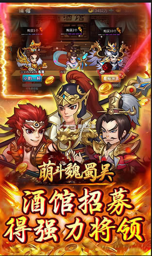 众多历史名将,齐聚三国,打造一支属于你的三国战队,征战三国,Q版可爱的人物造型,动感热血的优美音乐,让玩家可以尽情的在这个三国世界游玩,疯狂的魔王吕布,金刚般的张飞,钢铁侠典韦。