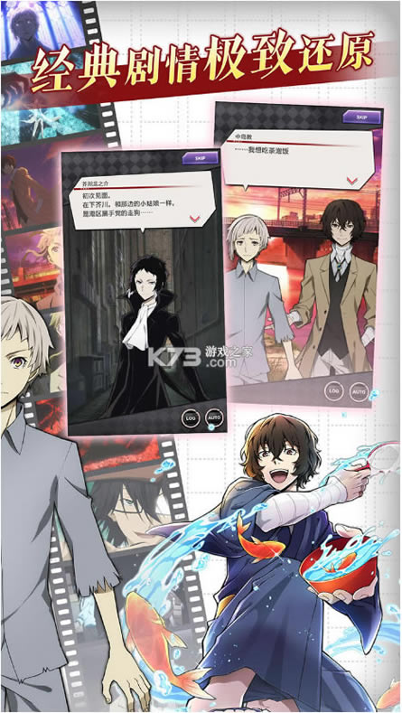 动漫迷们注意啦,来,看这里,这里有一款人气动漫改编手游。《文豪迷犬怪奇谭》是人气动漫《文豪野犬》改编手游,而且这款游戏是有角川正版授权的游戏,还原度非常的高,这是文豪迷们一定不会错过的一款游戏,在游戏中还增加了很多原创剧情,绝对能给粉丝们带来很多意外惊喜,感兴趣的小伙伴可千万不要错过哦!