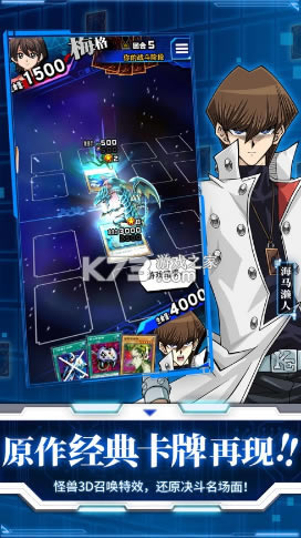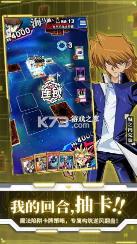 游戏王决斗链接作为一款好玩的漫改手游,全明星阵容出场:游戏、海马、城之内、孔雀舞等!适合新手的直观操作方式!同时兼具满足“游戏王”老手的游戏深度!