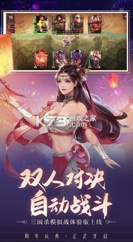 《三国杀》全新的模式来袭,三国杀周年庆开启了,体验足智多谋的线上博弈,新的皮肤来袭,亿万爱乐一起随时随地的杀一下,开启忠贞与背叛的较量,周年庆典正式开启双人对决自动的战斗,全新玩法尽情体验。