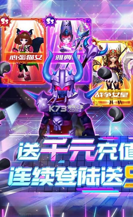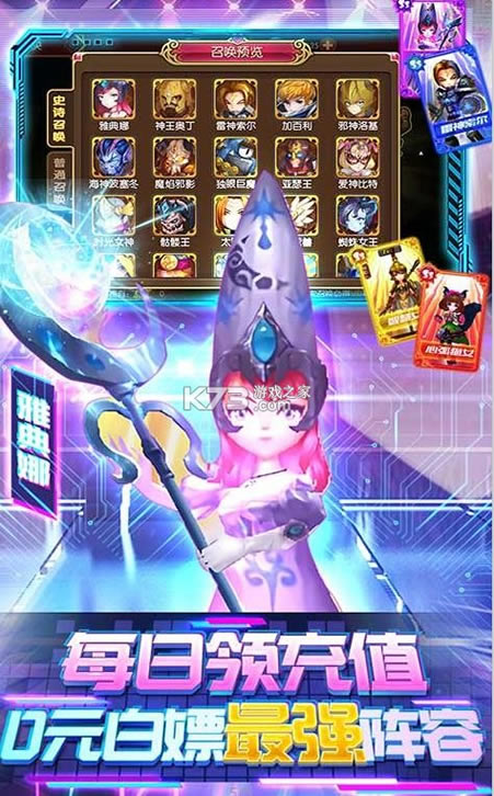 《幻想圣域-送千充千抽》是一款Q版幻想神话题材的3D卡牌半回合制游戏。背景为诸神战争,玩家可以在游戏中收集大量熟悉的神话英雄,神话英雄分为六大职业,攻击方式、攻击属性完全不一样,前后两排6V6的PK,玩家可以根据不同的对抗来使用相对应的布阵策略。上线游戏过程中我们将会送出千元充值以及千次抽卡的机会,让玩家更加自由的搭配多种英雄、契约法术,华丽的震动特效,即时释放,助你开启属于自己的诸神纪元。