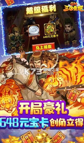 《三国荣耀》登录送1000w银两,在线送GM福利,三国武将鼎立相助,征战三国的乱世,与主公一起统一天下,多样的副本挑战,花最少的钱拿最牛的道具,征战三国助主公一统天下,推图无限送,开局得豪礼,648充值卡创角立刻得。