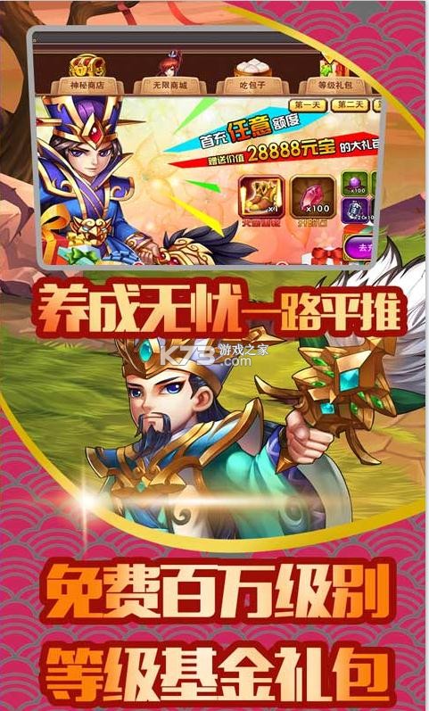 新手礼包:元宝x10000、速战令x1、刷新令x5