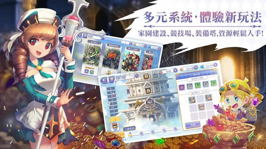 史诗英雄列传关卡,取得碎片不费力,搭配转职进阶强化,不需氪金肝帝,也能召集百位顶级英雄守护同盟。