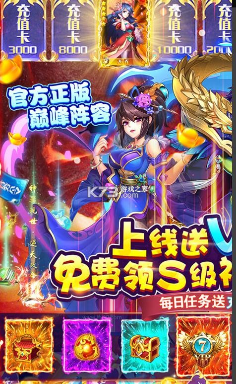 ★上线送V7+S级神将大乔+进阶丹*1000+银币888888+18888元宝