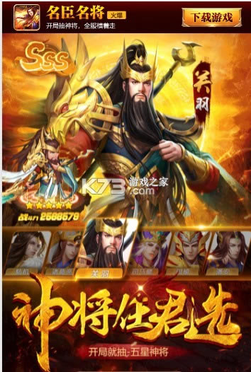 上线就送5星英雄,无废卡,无付费无vip,ssr神将全靠抽!