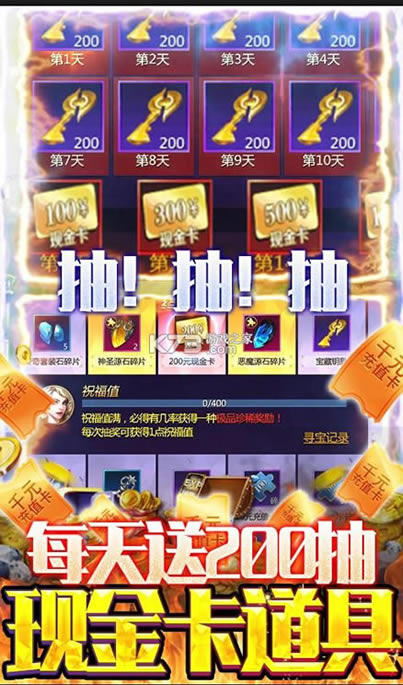 ★每天签到送两百次策划金库抽奖,充值卡!现金卡!抽!抽!抽!快乐就完事!
