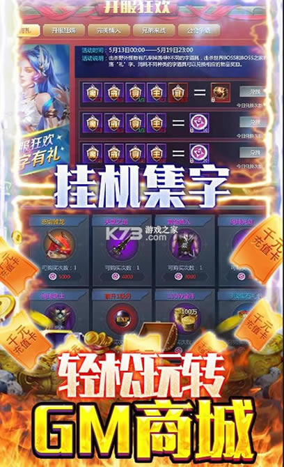★挂机集字换GM币!劲爆GM商城,兑换稀有外观道具和现金卡