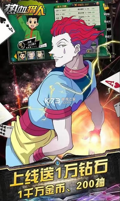 《热血猎人-满V版》是一款以动漫全职猎人为题材改变的策略卡牌手游,经典角色加上经典招式,百种不同的技能搭配,让您真正体验到卡牌策略游戏的纯粹本质。游戏上线赠送真实满级VIP,1万钻石,角色卡池200抽,S级念兽-魔狐。活动奖励送不停,初期即可获得多个S级猎人!