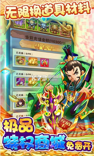 ★后缀说明:特权商城无限换材料和核心道具,海量道具随心换;上线即送2000元充值卡