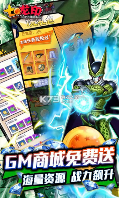 《七龙印》游戏是以经典日漫改编制作的一款放置类卡牌游戏,游戏将以七龙珠当中的主角们作为游戏中的角色,带你增加了许多全新的角色!次世代极致画面、全屏爆燃的必杀技的经典回合制战斗,让你体验爽快而又激烈的超燃战斗。GM商城震撼登场,超多道具等你来换,一键打败大魔王。