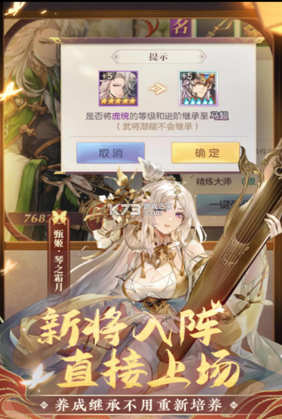 游戏中每个武将都有着各自的专属技能,同时拥有多种潜能组合,玩家可以根据战场以及阵容来自由变换武将定位,决定武将培养方向。值得一提的是,每个武将都可以通过试炼提升到无双境界,不再受限于稀有度、品阶限制,只要用心培养,武将都可以是最强的。武将养成方面,玩家也不用担心重复养成的问题,游戏中武将装备、等阶都可以一键继承,在变阵换将时可以无损转移。