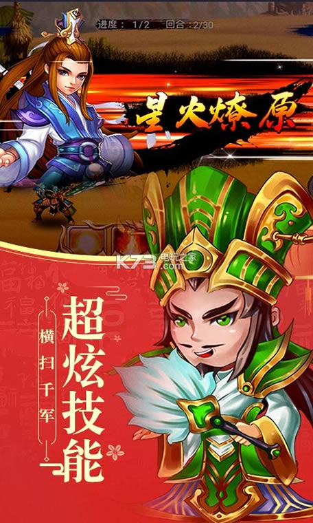 游戏以古代三国时期为背景,再现乱世烽火,玩家需扮演一方诸侯,招募各路三国武将谋士,排兵布阵尽显华丽阵容。