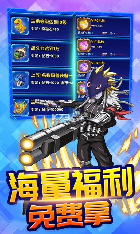 《恐龙宝贝向前冲无限抽版》上线就送超级VIP、56888钻石、3000w金币,20级礼包即可领取128充值卡,