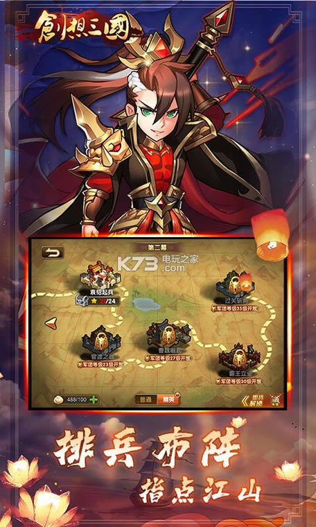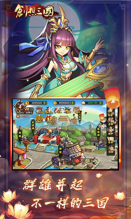 《创想三国》是一款三国题材的卡牌策略手机游戏,它的主要特点是军团作战,横版对冲,强调布阵策略和临场技能释放,让你淋漓尽致的体验指挥千军万马的大将之风,秒杀以往枯燥乏味的自动战斗模式。玩家可以率领40来个各具特色的史诗英雄,包含几百种武将技能,指挥300名以上的单位同屏厮杀,缔造“军团对战”的史诗感。能感受到“一夫当关,万夫莫开”,“大将冲锋,如入无人之境”的爽感。