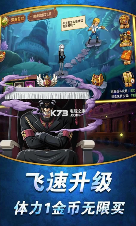 《少年勇者团星耀版》经典日漫原创大航海题材卡牌手游,游戏精致还原动画经典,原味再现顶上战争的宏大场面。上线即送VIP19,金币*30000,贝里*300w,四皇、王下七武海、海军三大将都可成为你的伙伴,伟大航路等你来征服。