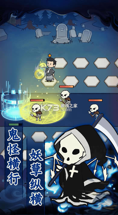 9.玩家经营你的捉鬼学院,解锁更多伙伴,合成升级策略布阵站位对抗强大的妖魔。