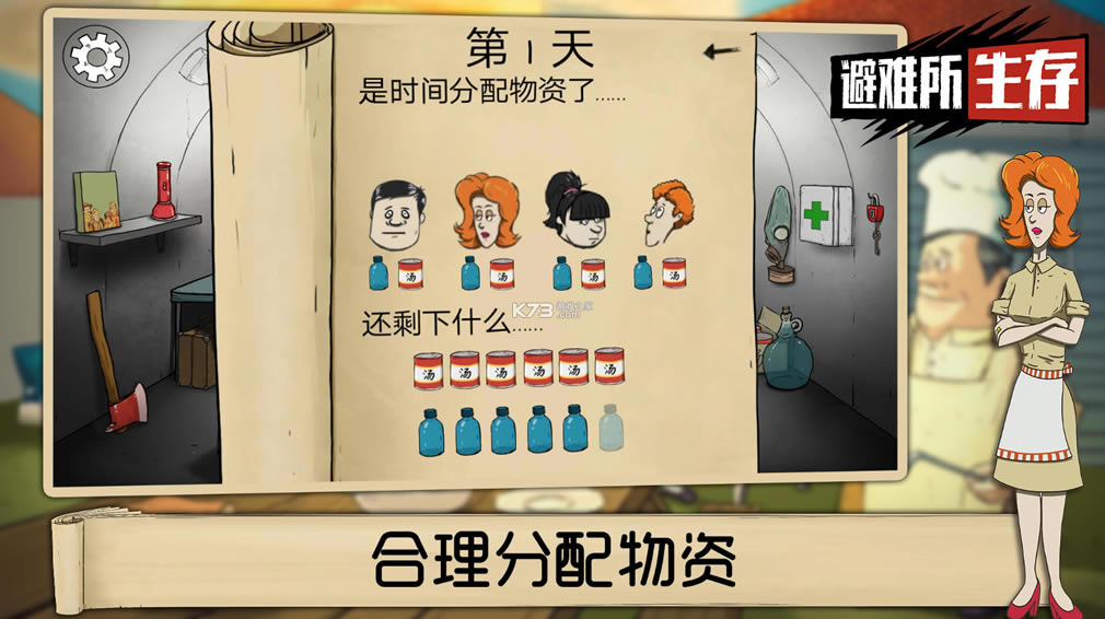 《避难所:生存》是一款知名Steam移植模拟生存冒险类手游! 游戏故事背景: 核武器一直是威胁世界和平的隐患,为了提高民众对核武器的认知与危害,呼吁世界和平!各国达成一致意见,通过先进的虚拟现实视觉仿真技术,模拟在核武器摧残下的生存环境让民众进行体验,从而让民众意识到核武器的危害,珍惜眼前的和平! 你参与了本次仿真体验,模拟你所在的郊区响起防空警报,还有60秒这片区域就将化为炼狱,你将在被空袭的前60秒,竭尽全力营救家人并且收集物资至避难所,随后在避难所挣扎求生。要知道无论你救了谁,你储备了什么物资,都会影响到你在避难所的生存情况。 在避难所的生存也充满了艰难:你要兼顾家人的温饱以及健康合理分配罐头和水,还需冒着受伤和死亡的风险外出搜集物资!每天都可能会有恶劣的突发事件发生,需要你在坏和更坏的选项中做出抉择。 你能否在这末日中坚持下来最终得到救援?或是无法适应艰苦的环境及匮乏的资源最终葬身废墟?