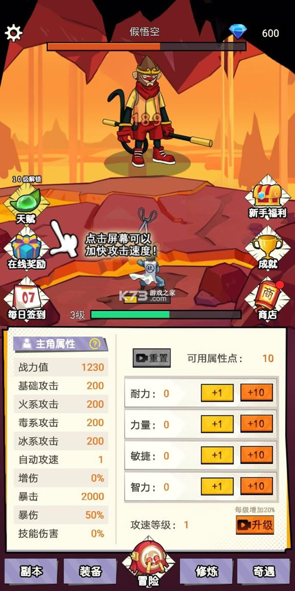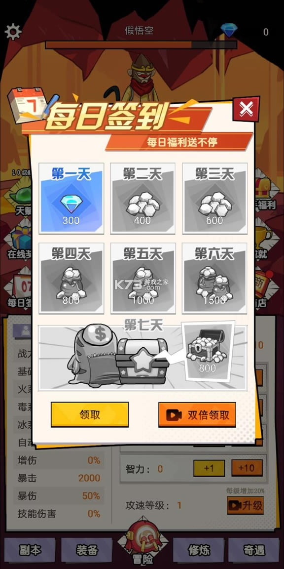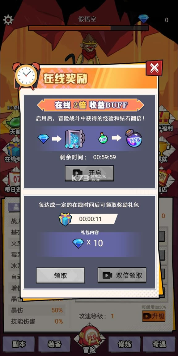破解内容:免广告领取钻石奖励,免广告无限升级角色等级。