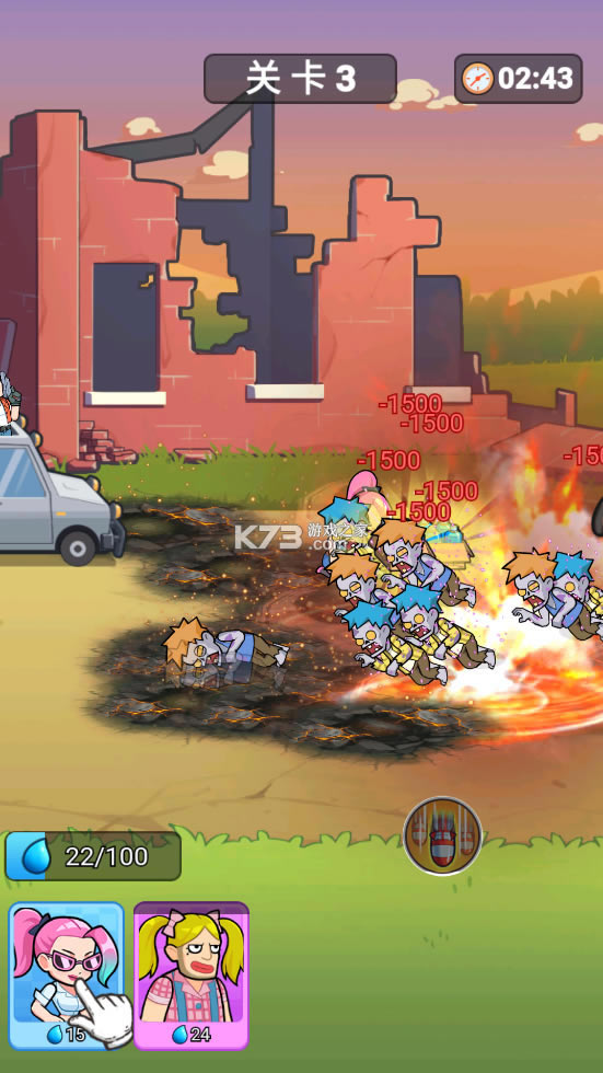 游戏玩法招募队员,指挥许多小姐姐作战,每个小姐姐都有自己独一无二的特点哦炫酷技能,解锁全屏技能,直接消灭丧尸吧升级车辆,让主角变得更强,车辆变得更加坚固