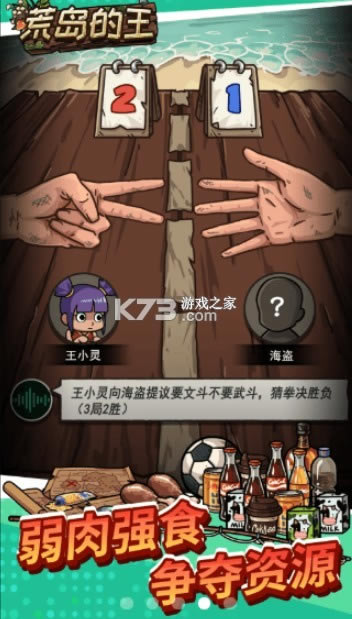 荒岛的王是一款好玩的冒险生存游戏,荒岛的王游戏中玩家将流落到荒岛,可以弱肉强食,抢夺资源,每天都会更新各种临时危机,玩家要想办法在荒岛生存下去。
