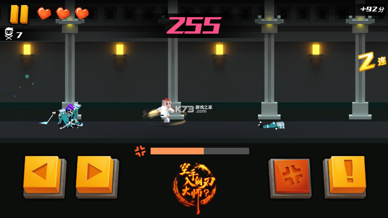 游戏玩法轻松,街机风格的玩法,化身空手入白刃大师展开挑战
