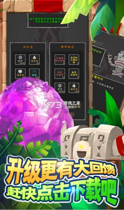 游戏采用远古石器风格,游戏画面精美细致,战斗过程精彩绝伦,相信会带给玩家酷炫式的互动体验。挂机类游戏,玩家在游戏创造角色时可以选择4个经典角色造型进行游戏,