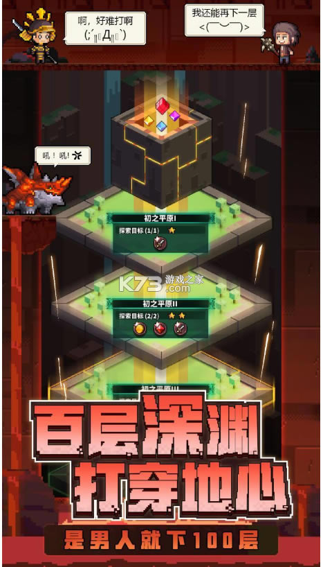 目前的游戏版本约有70层左右的层数,每一层都有着不一样的场景、怪物和道具!赶快努力下穿地心吧!最美的风景,总在最险的深渊!不过可千万别被恶龙干掉啊!