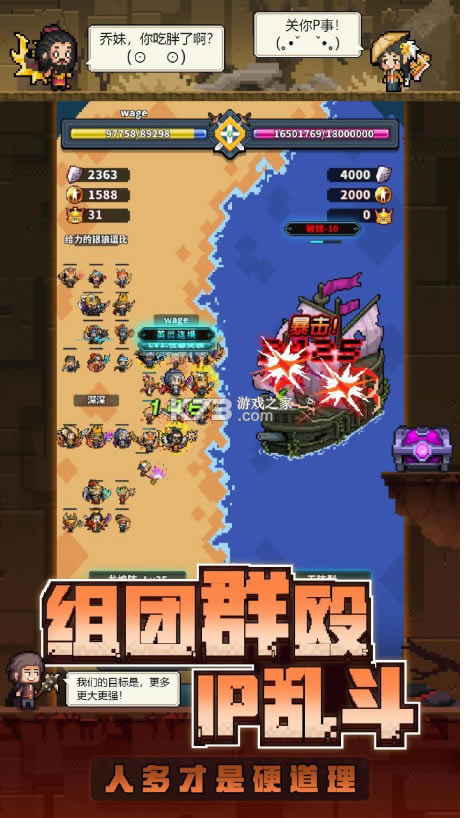 人多力量大,当代人的冒险,当然是更多更大更强!最多12人上阵,各种次元IP角色乱斗,还可DIY自由培养,随心所欲组建你自己的专属冒险团吧。这里没有国家队抽卡,强不强都能靠自己养出来,还可搭配阵容、战术等等!然后带着一众兄弟姐妹,群殴BOSS,赢得无上荣誉!