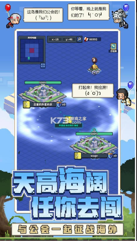 冒险从来不是孤独的旅程,你还可加入各大冒险家公会,与小伙伴一起征战星辰大海!合纵连横,用你们的智慧和实力,拿下属于自己的海岛建大别野,成为四海一霸!
