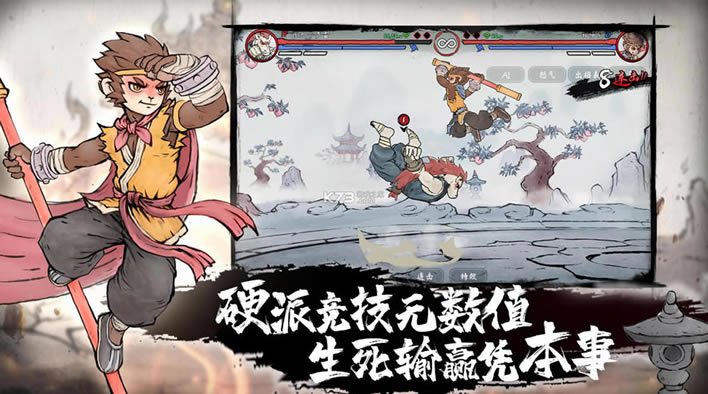水墨西游主题,东方韵味与纯正格斗的独特融合,无数值养成,几十种连招,生死输赢全凭本事。