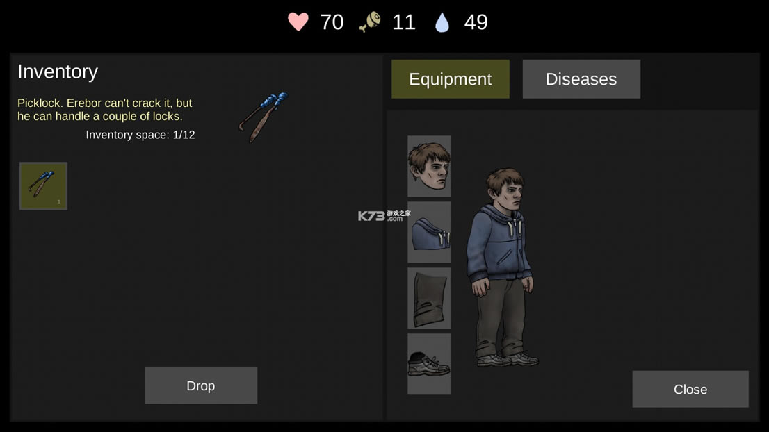 - 艰难的生存。你会被幸存者的典型问题所困扰,例如饥饿、疾病、口渴、核冬天和帮派。
