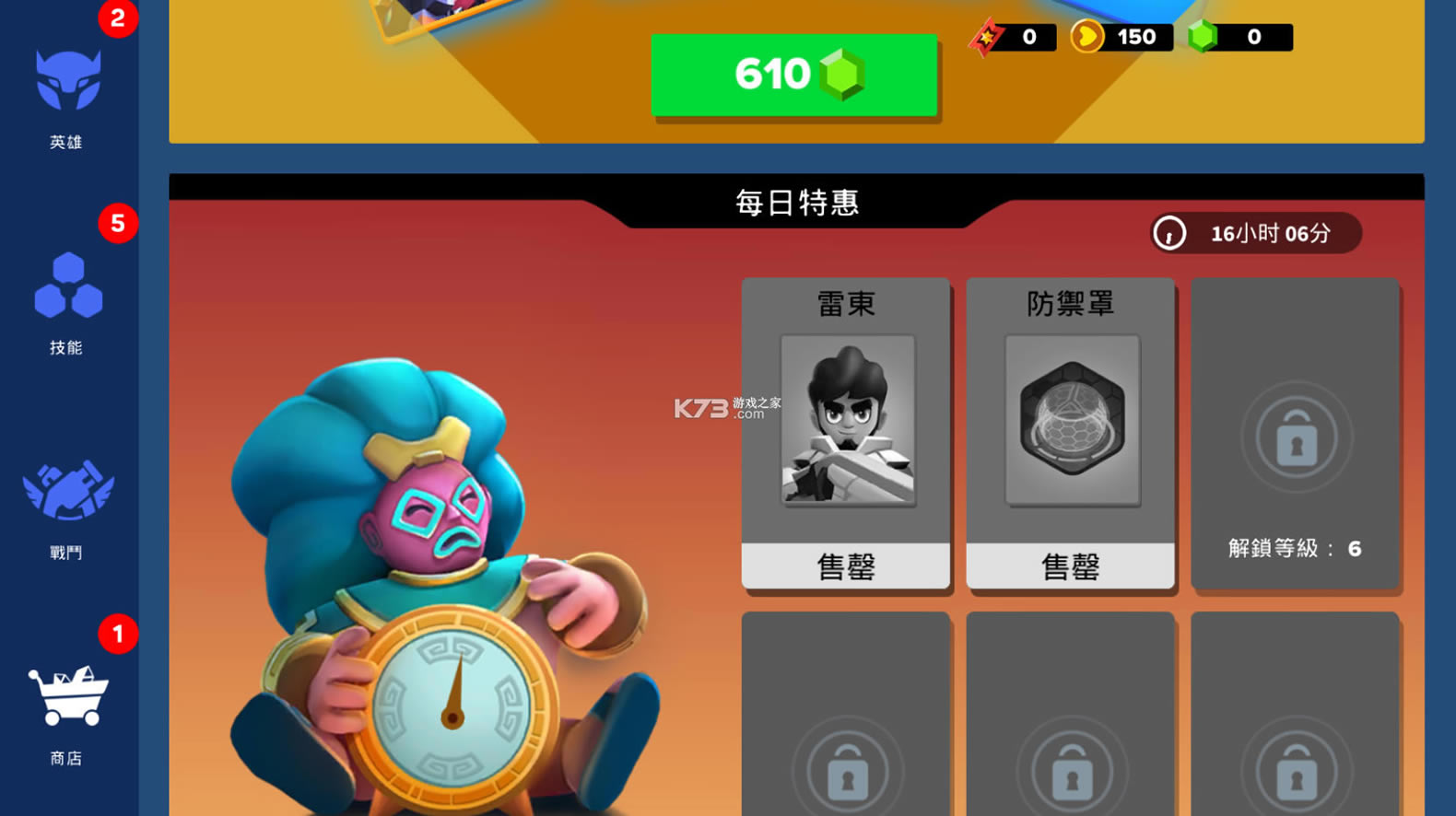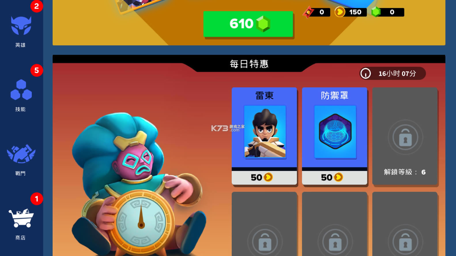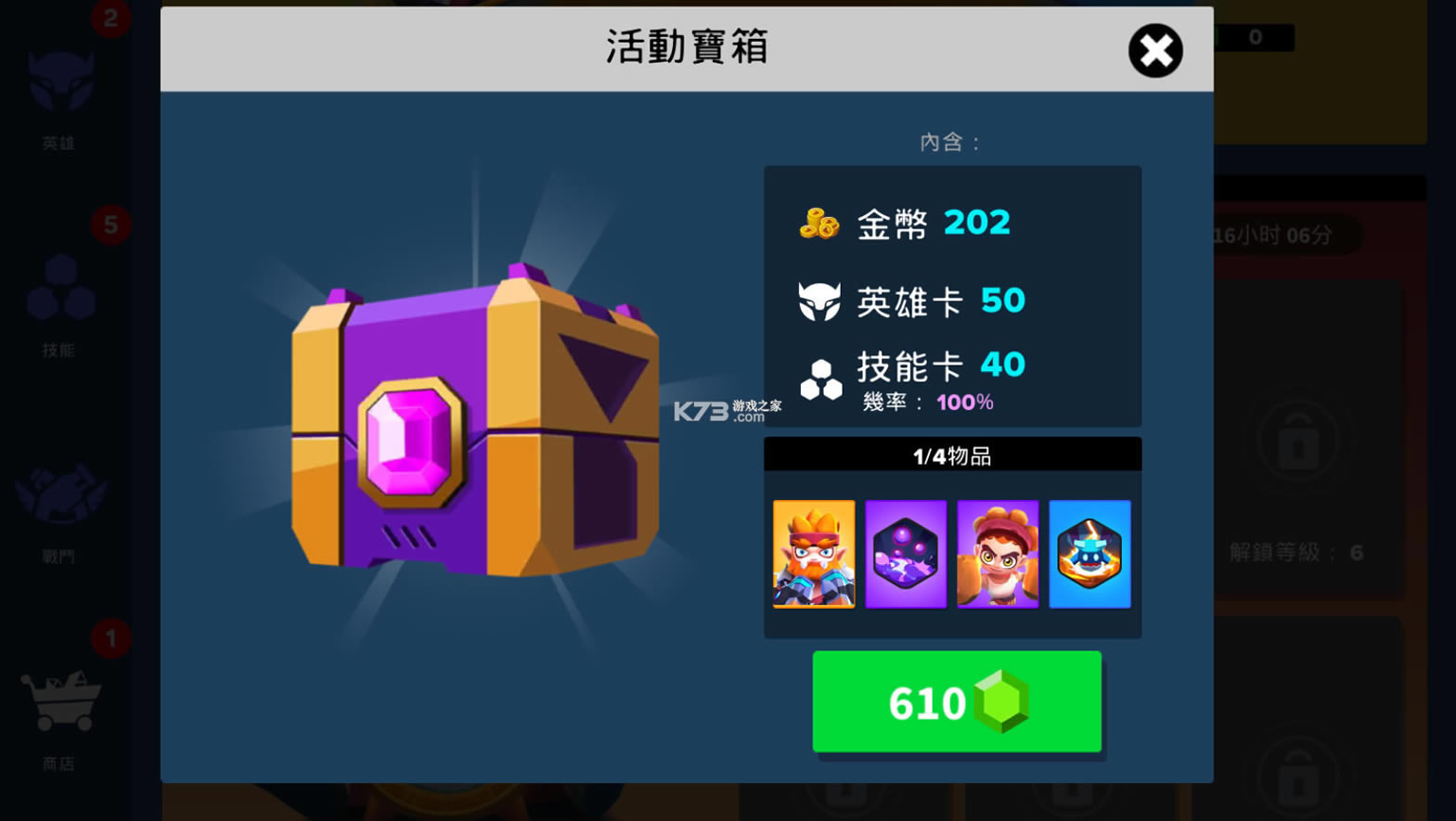 内设超多关卡可以挑战,每个关卡都需要控制英雄顺利的击杀目标任务即可。游戏内设闯关模式和大逃杀模式可以挑战,不同的模式玩法不一样,尽可能的消灭任何一名敌人,顺利的存活到最后,或者在时间结束时击杀最多敌人,即可获得胜利和金币,金币在商城可以购买全新的皮肤哦!