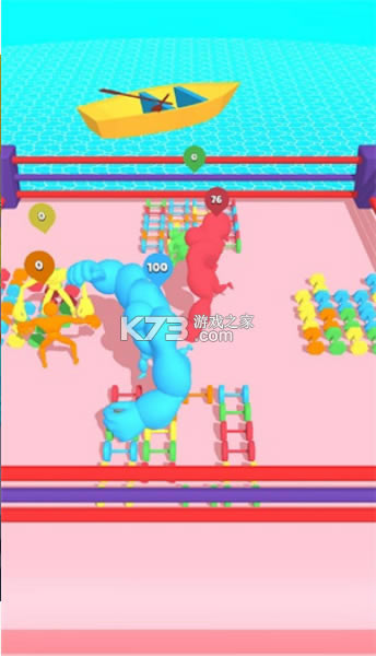 你将在超级拳击竞技场这款游戏里面成为一名拳击手,然后参与到多人拳击对战中。再这样一个大擂台上面,会出现非常多的对手,你的目的就是尽可能将它们全部淘汰掉,站到最后,成为本次的冠军。整个游戏的玩法非常的简单,只需要操控着你的角色将所有的对手打败就可以了,就能够获得最后的胜利了。