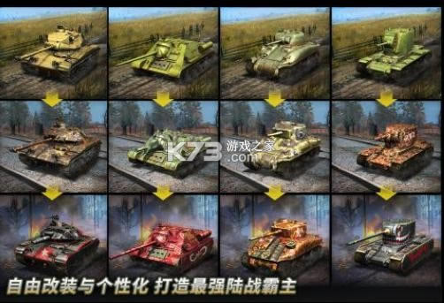 口径即正义,射程即真理!在兵工厂中深度升级改装坦克部件与配件,强化炮塔、装甲、引擎、履带、观瞄系统,提升坦克火力,行进速度与火炮精准度等