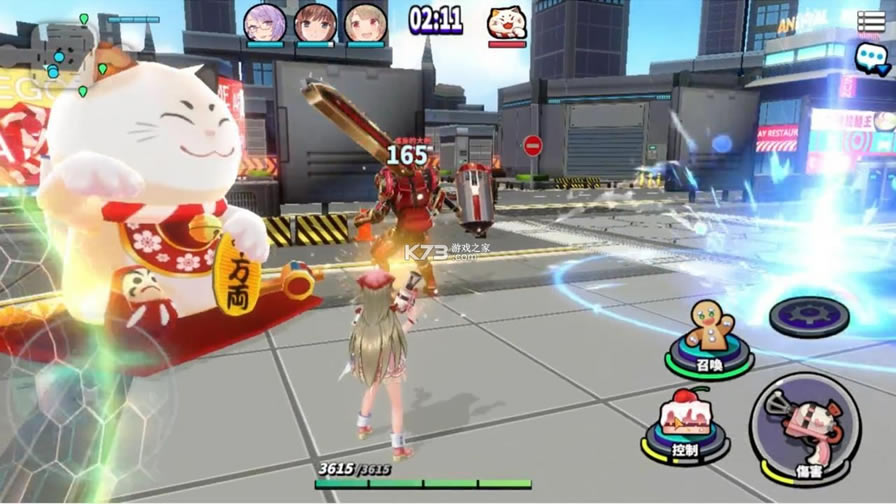 玩家熟练度达一百点开启此玩法,比赛规则类似塔防游戏,一场限时三分钟,一样会随机与其他两位玩家的少女组队;场上会出现一只随机移动的巨大招财猫,三分钟内保护招财猫不被怪物所击倒,若招财猫被击败则此回游戏提前结束。