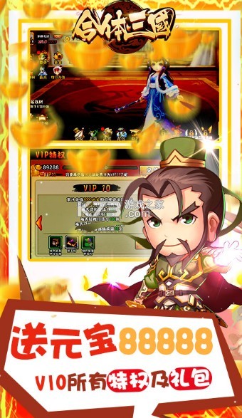 上线福利:上线即v10,领三星神将刘备+满星毕业材料,元宝88888,300三星神将魂魄宝箱