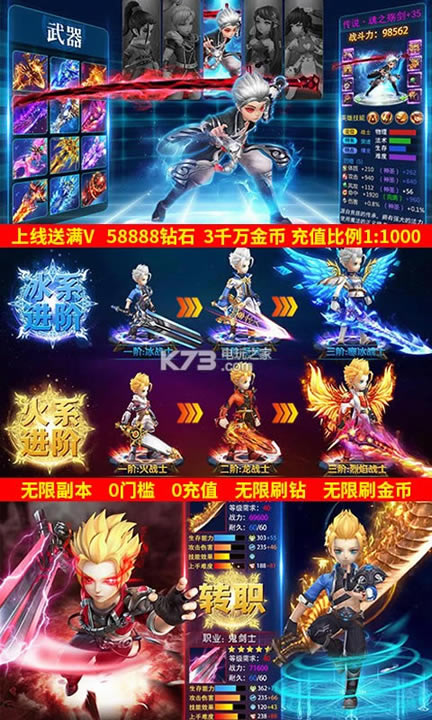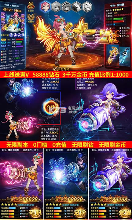 ★上线赠送满级VIP、钻石*58888、金币*3000W!
