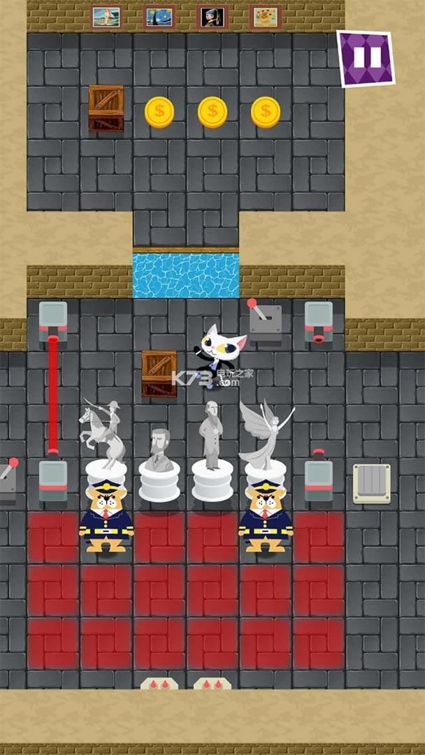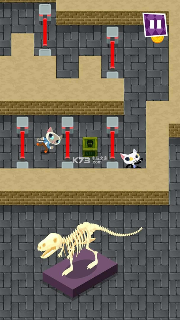 《怪盗喵喵喵》让玩家控制可爱的怪盗喵咪,来到博物馆中进行遗物寻找,怪盗喵喵喵手游包含了多种场景,并且还支持双人模式让你体验到独特的怪盗冒险玩法。