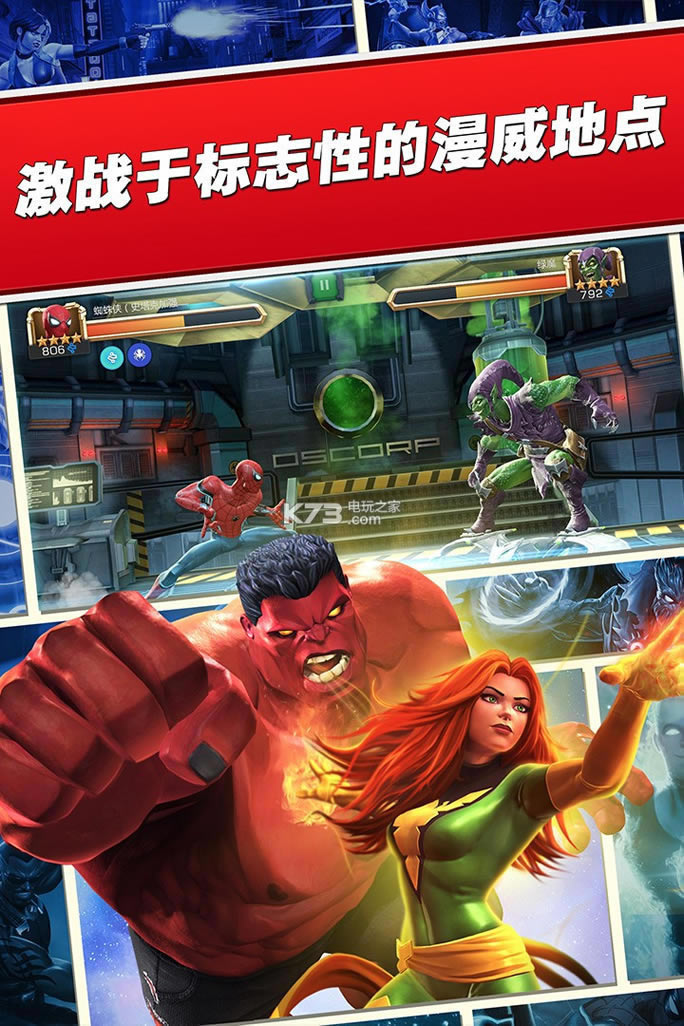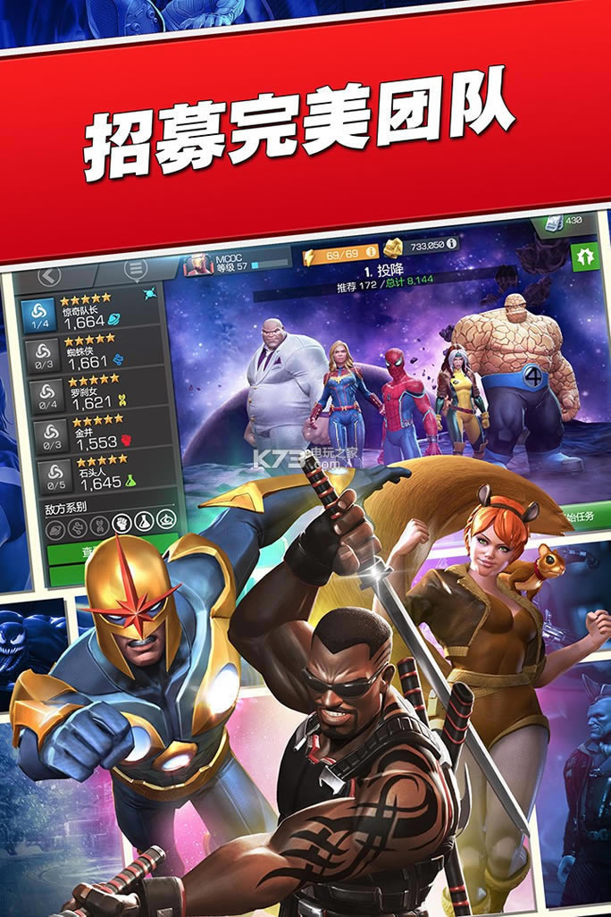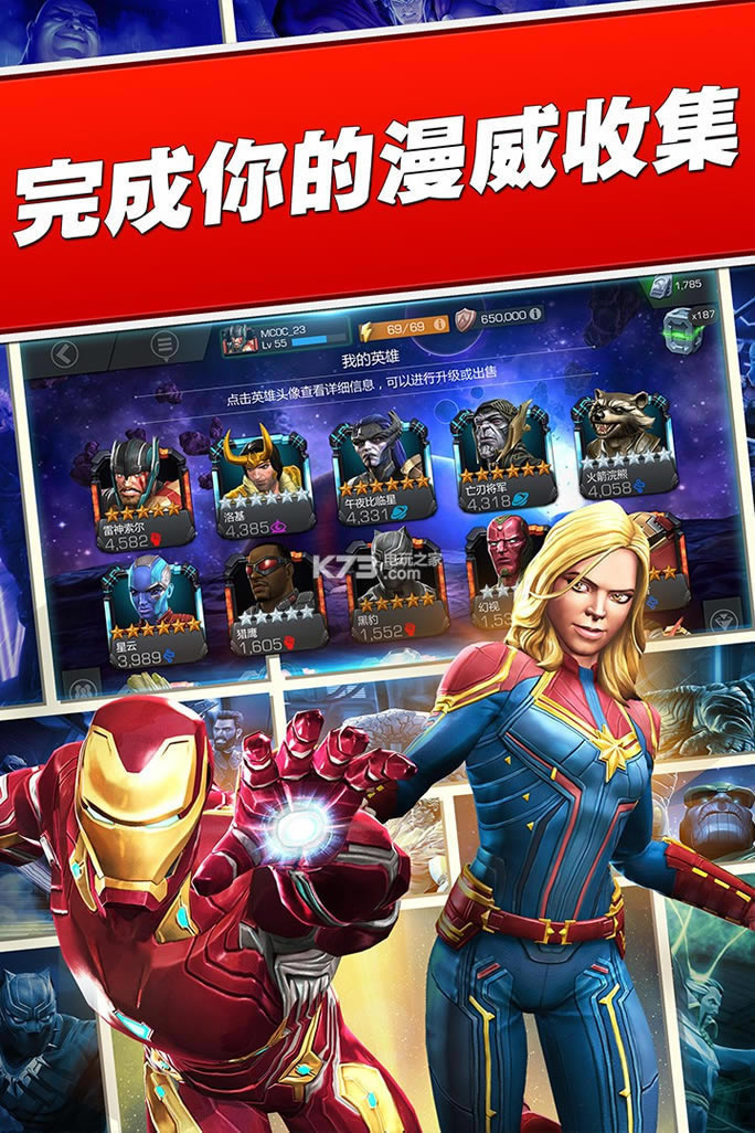 • 收集,升级,并根据漫威漫画情节中的人物关系,妥善地安排队伍中的英雄和反派成员来获得队友加成