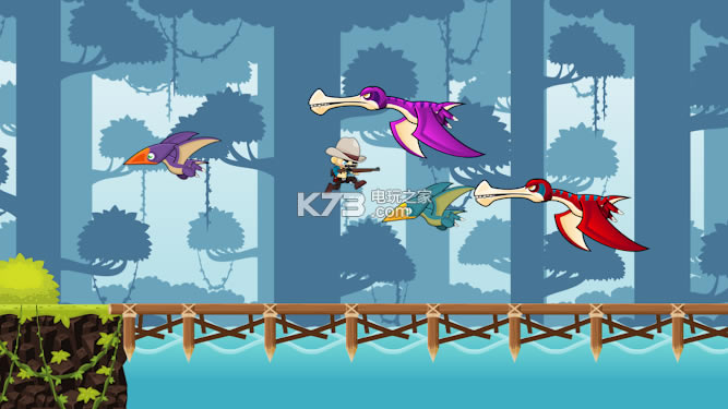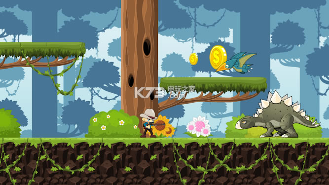 《侏罗纪2D(Jurassic 2D)》帮助角色一起来探索这个侏罗纪世界,每位角色都有着不同的技能,你可以自由的选择它们来进行冒险,在多个不同的环境中收集金币,并干掉沿途的恐龙。