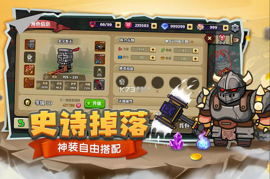游戏中10+种套装,80+具有独特效果的散件装备,人物自身属性加点