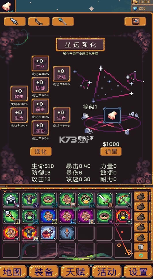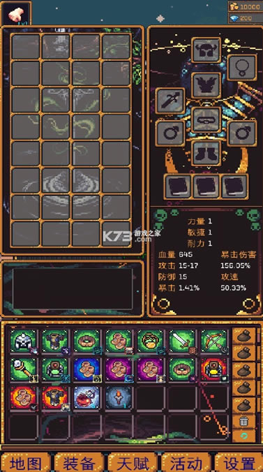 游戏内容结合了地下城rpg、塔防等等元素,你可以无限探索这个场景,通过杀死敌人获得新的技能和属性,解锁更多的装备。