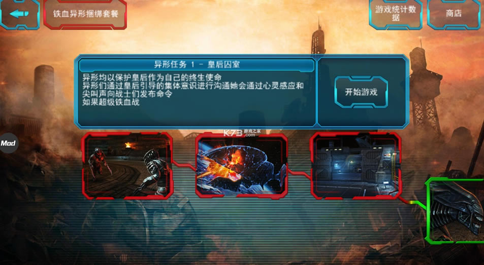 利用抱脸虫召唤、狂暴补充器、网枪、埋布地雷、热视觉、异形视觉、等离子炮和其他更多精彩武器或装备在战争中赢得优势。