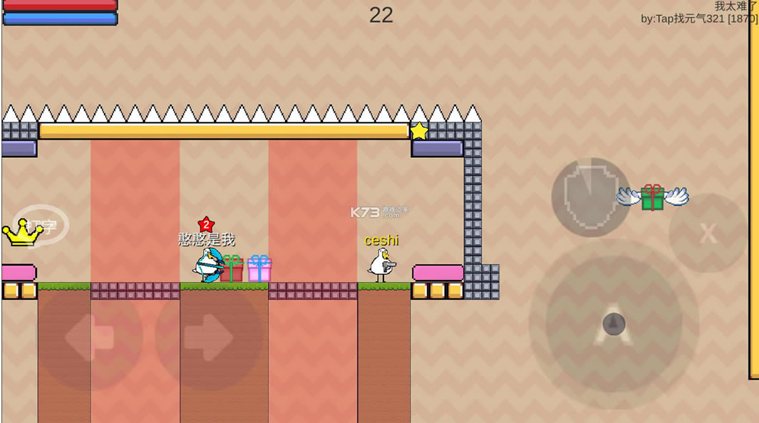 动物干架这款游戏采用了很可爱的动画形象设计,很魔性的趣味闯关,玩家在游戏中操控不同的可爱小动物去完成冒险,难度不是很大,每一个小动物看起来都超级可爱,还可以和自己的好朋友一起联机战斗。